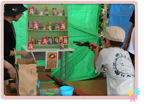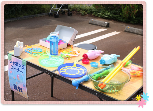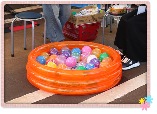 | こちらは水ヨーヨー釣りの会場です。これがあると、お祭りらしくなります!! |