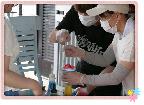 かき氷コーナー、わたあめコーナーもありました! たくさんの美味しいお店が並んでいました! |